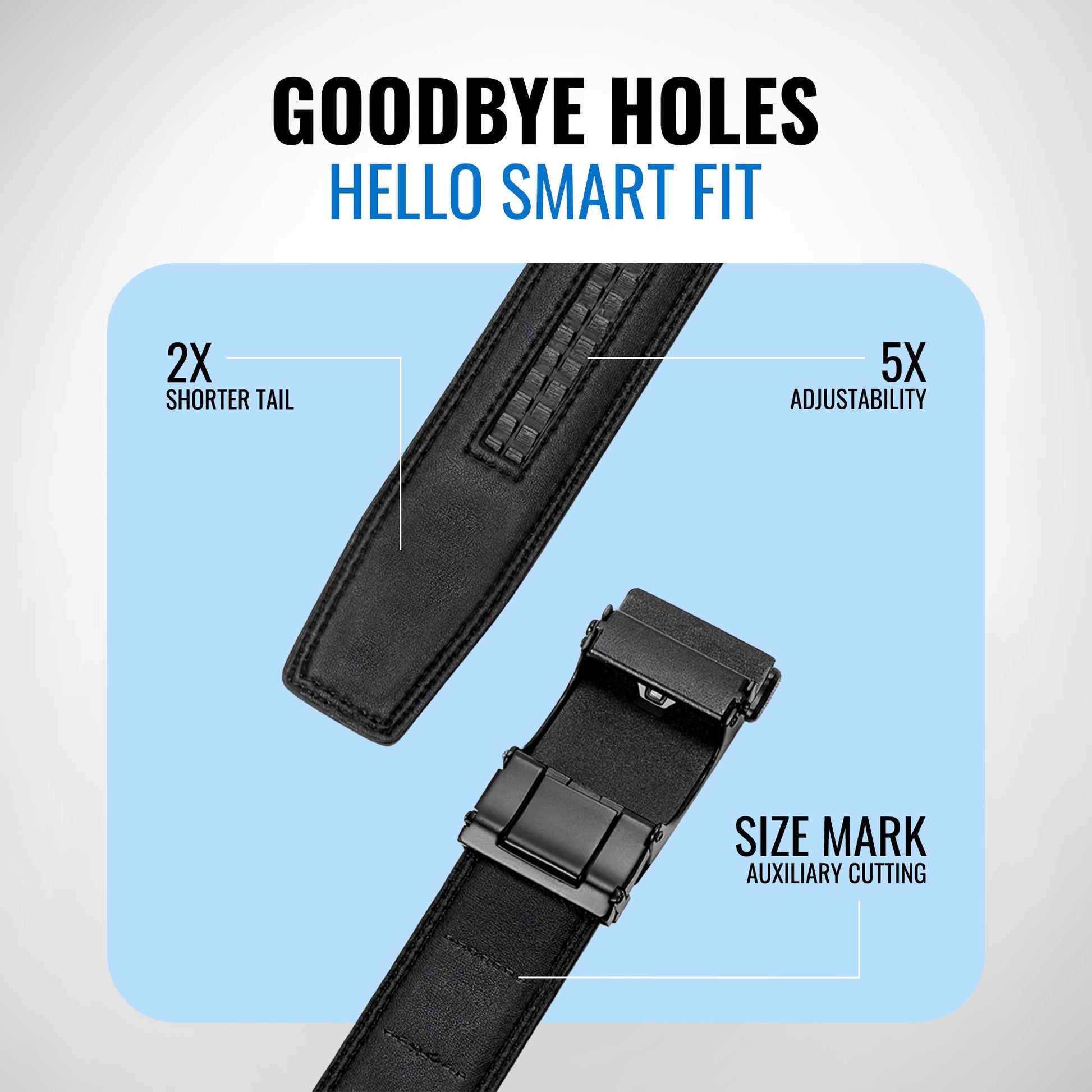 The ratchet system allows for micro-adjustments, so you can tighten or loosen the belt in small increments for a perfect fit every time. No holes needed.
